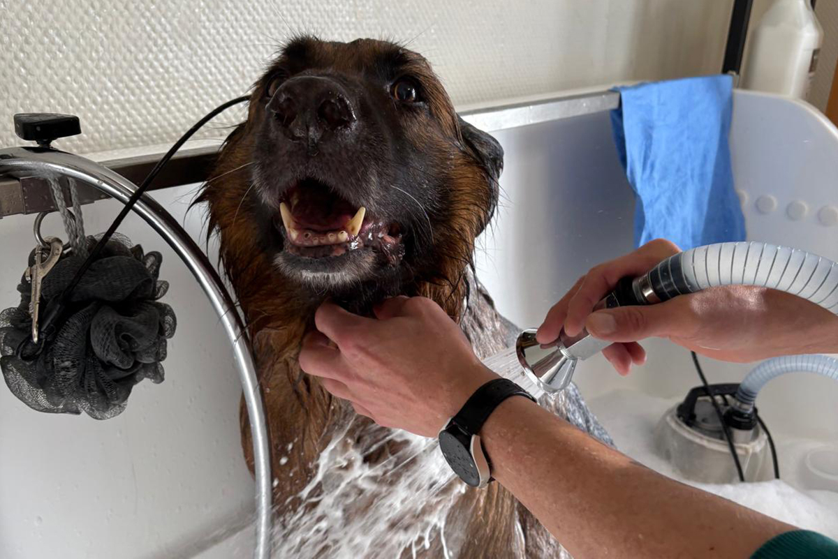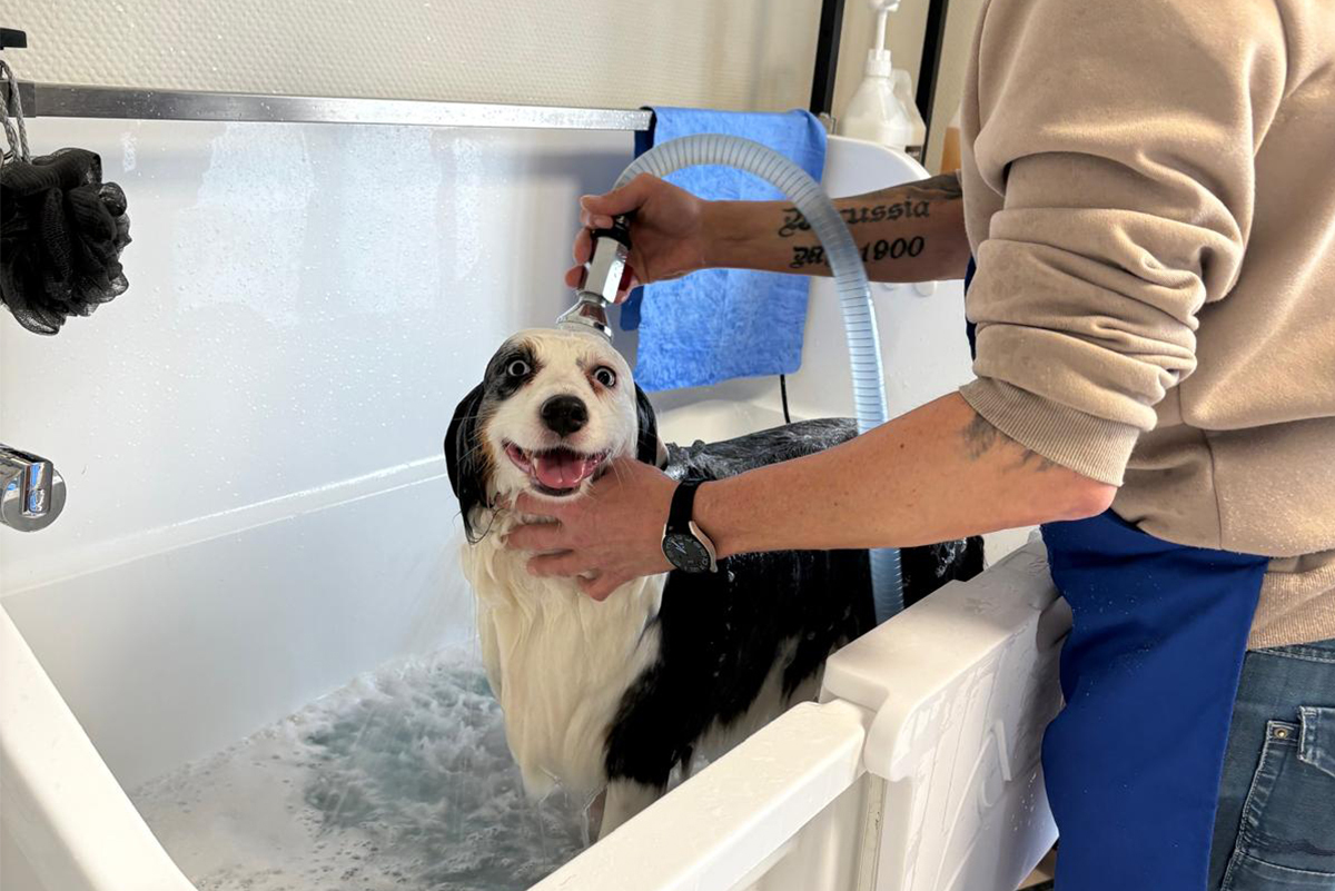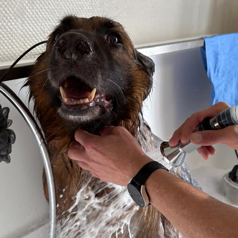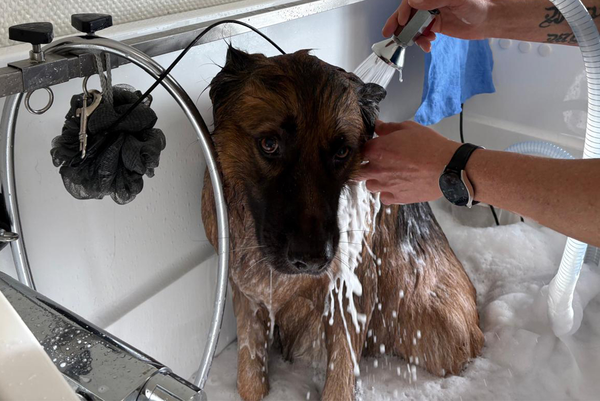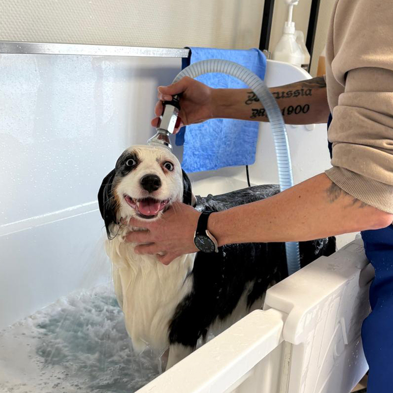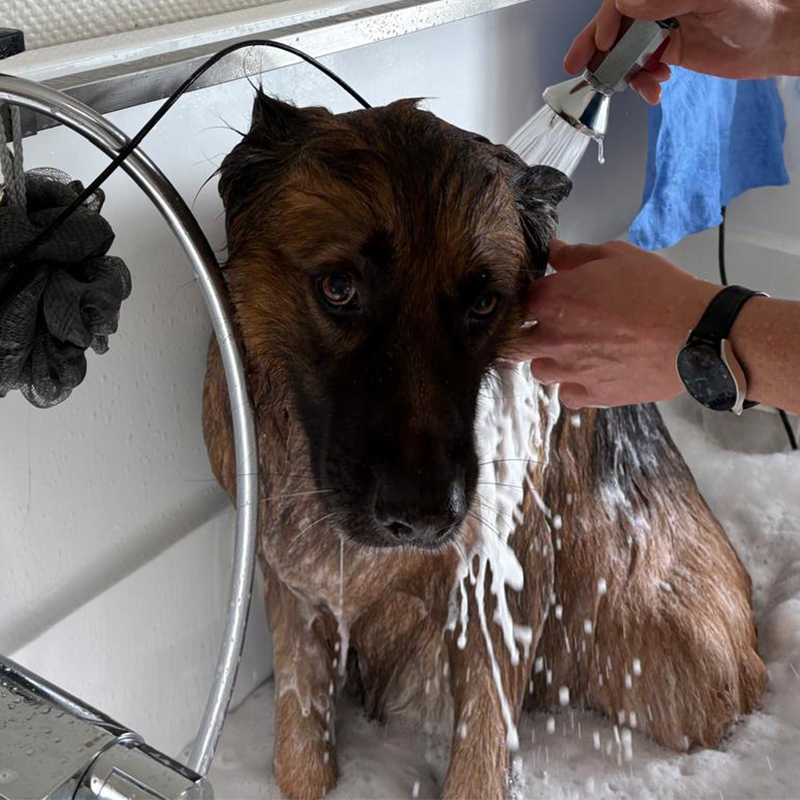 Ihr Hund genießt eine gründliche Reinigung mit hochwertiger Pflege. Ich verwende nur die besten Produkte, um das Fell Ihres Lieblings glänzend und gesund zu halten! Hier wird Ihr vierbeiniger Freund liebevoll von mir gewaschen und geföhnt!